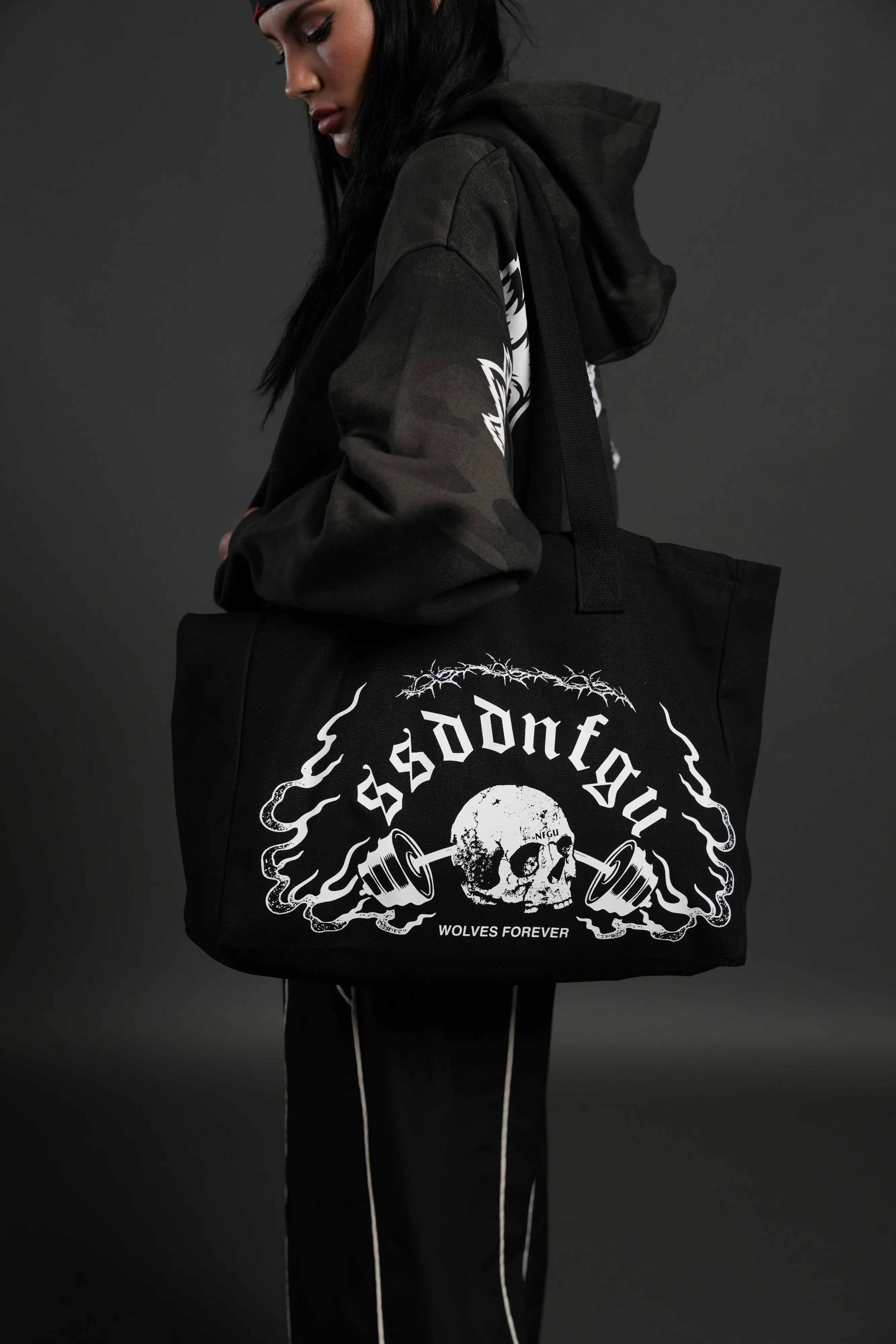 Hannya Inferno Canvas Tote in Black