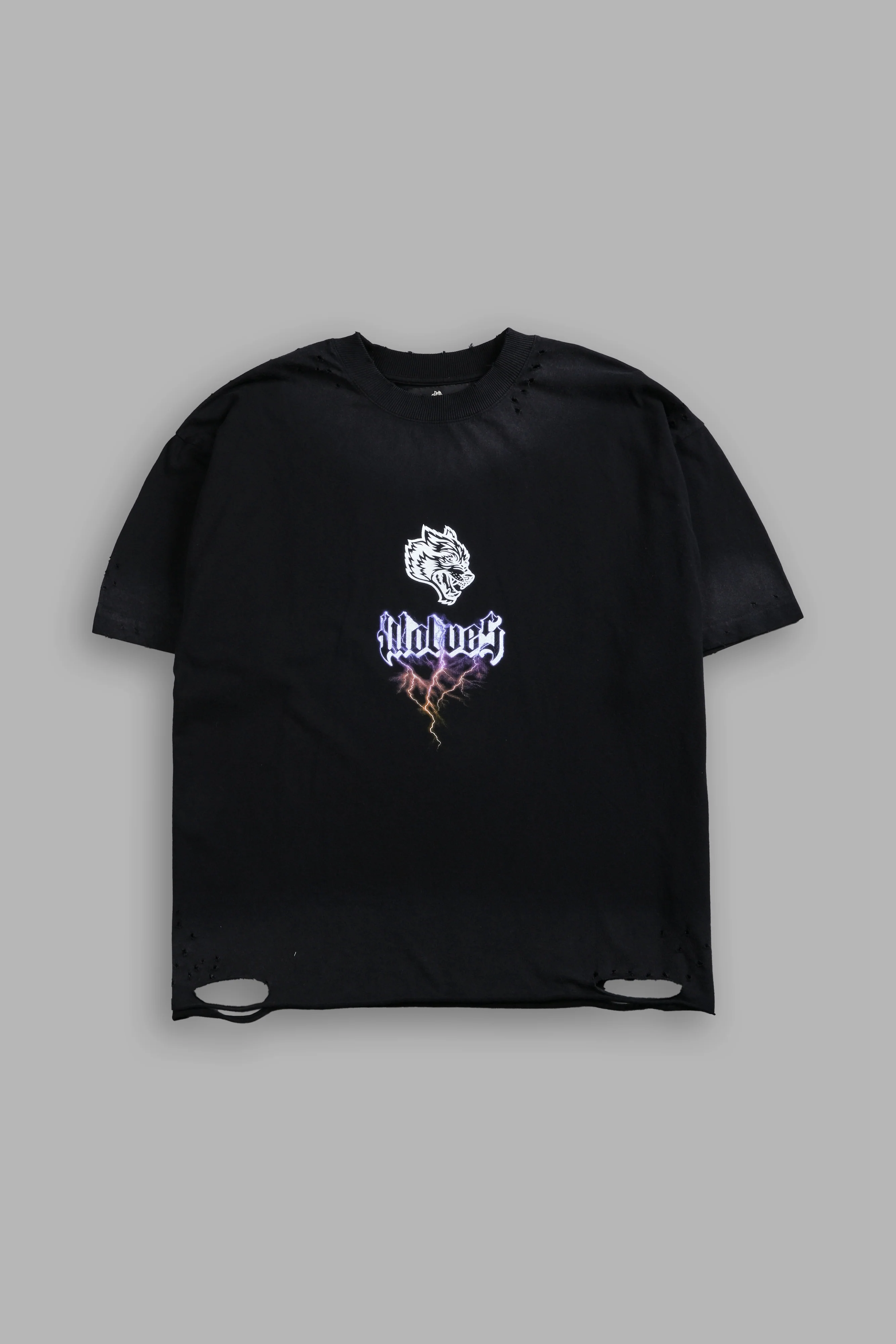 Wolves Lightning Distressed Grunge Tee in Black Drift Wash