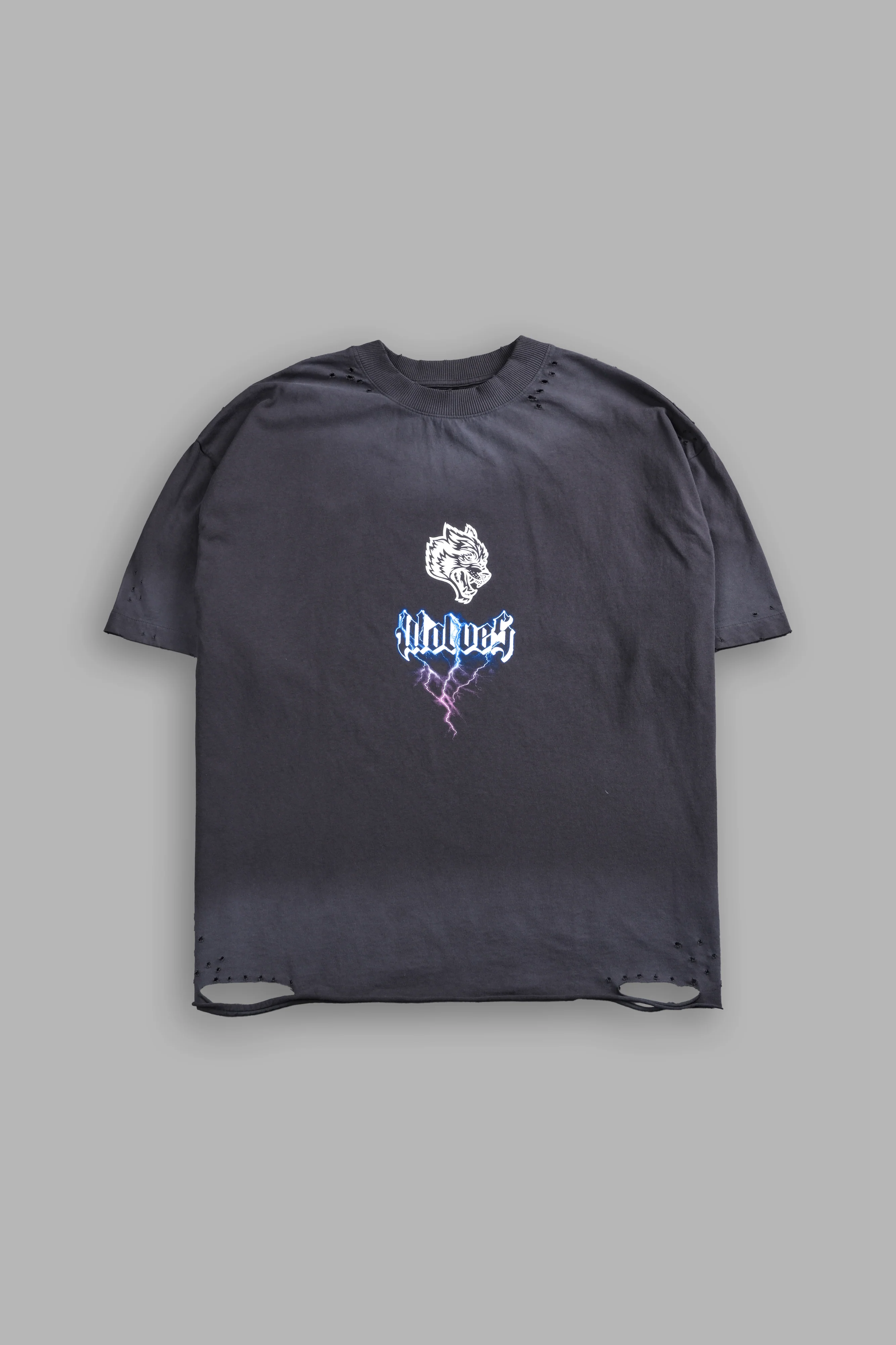 -65%Wolves Lightning Distressed Grunge Tee in Wolf Gray Drift Wash—